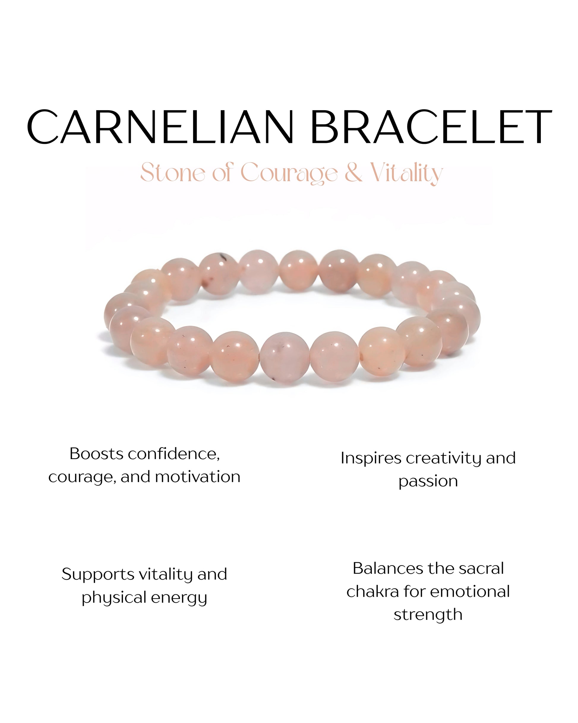 Ignite your inner strength with the Shwet Carnelian Bracelet. Known as the Stone of Courage & Vitality, Carnelian carries a warm, fiery energy that inspires confidence, creativity, and motivation. Its vibrant orange hues resonate with the sacral chakra, helping you overcome self-doubt, boost energy, and embrace passion in everyday life.